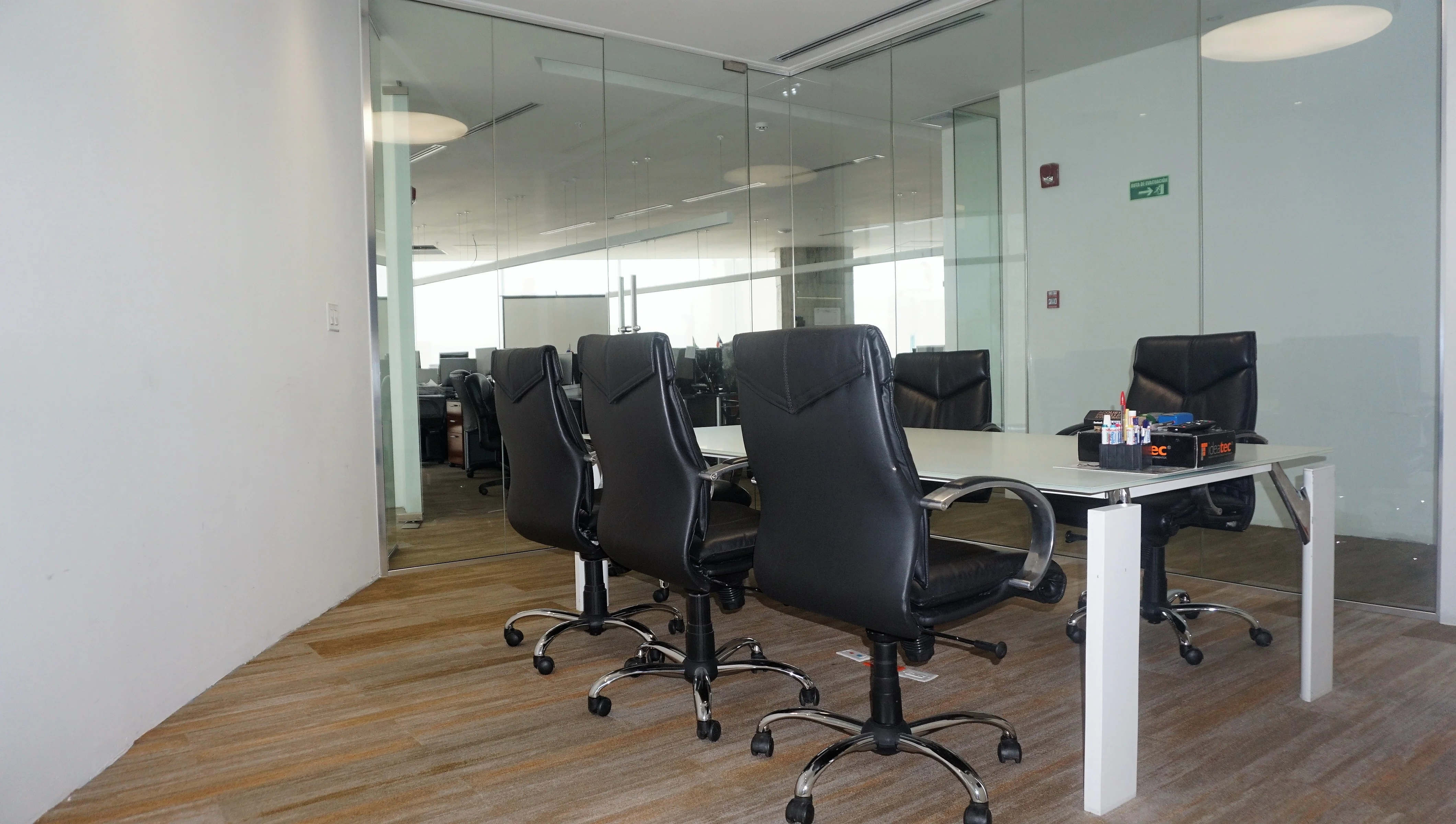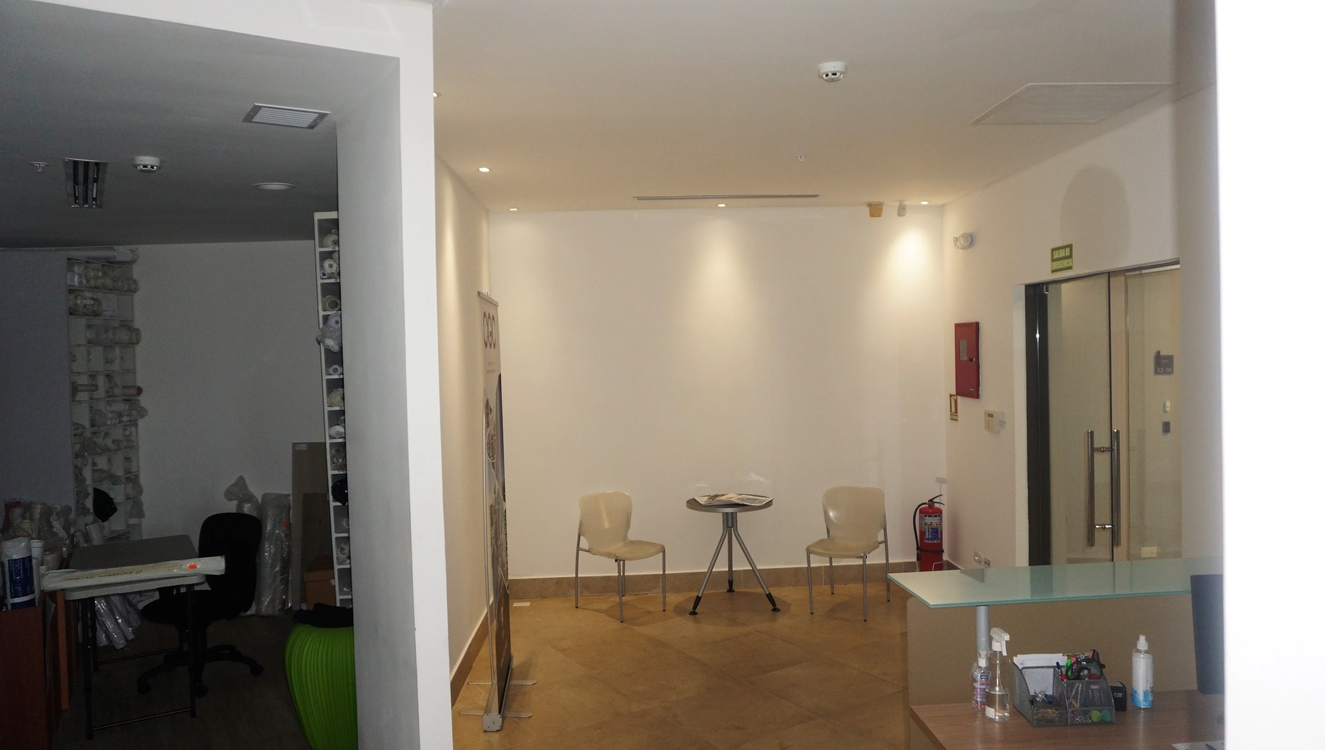 The space is distributed in reception, waiting room, 2 meeting rooms, 4 half bathrooms, 6 offices, 1 warehouse, electric room, toilet room, server room, terrace and kitchenette. It also has 12 parking spaces.